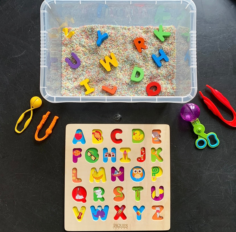 - Hide small objects within the dry materials for your toddler to discover as they explore different textures and have fun.