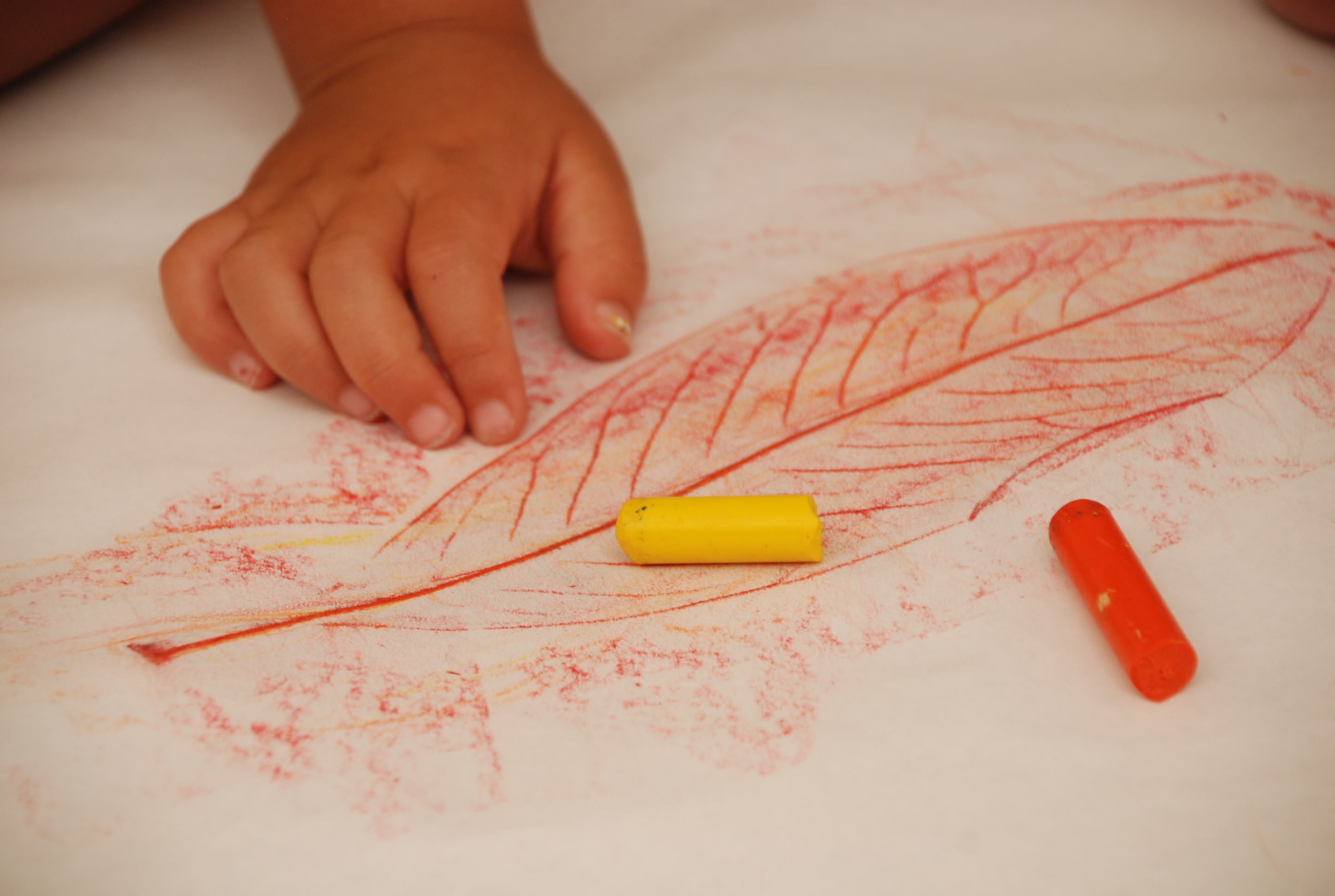 - Use a crayon to rub over the paper where the leaf is placed.