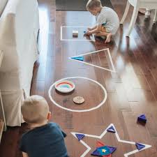 - Arrange the items to create a course that involves jumping, crawling through tunnels, and balancing on the tape.