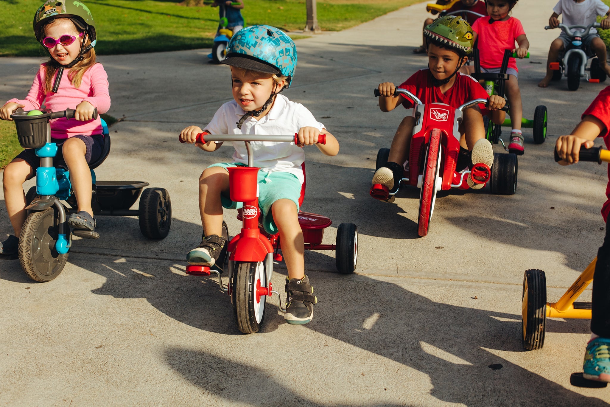 - Ensure your toddler's bike or trike is in good condition and the area is safe and flat for riding.