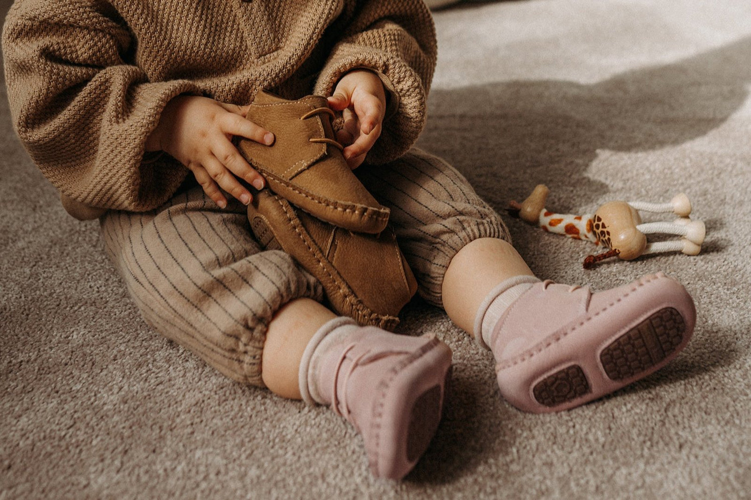 Opt for shoes that are flexible and lightweight to support natural foot movements. Stiff shoes can hinder your baby's ability to feel the ground and develop balance.