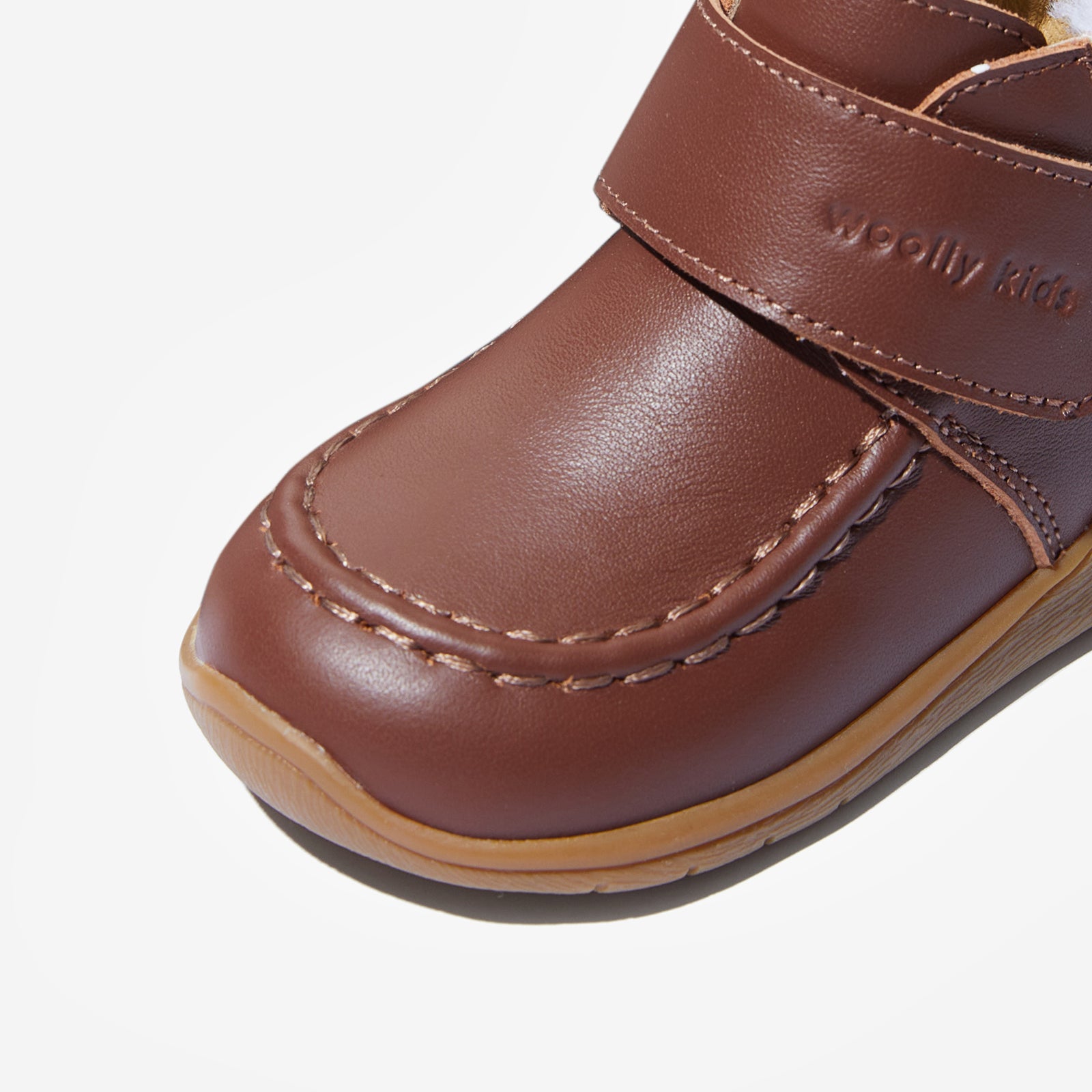 Each pair of Woolly Kids shoes is meticulously handcrafted by experienced artisans using chrome-free tanned A Grade leather from Laverton. Our shoes undergo a 17-step handmade process and are designed to fit the unique shape of children's feet, ensuring comfort and support as they grow.